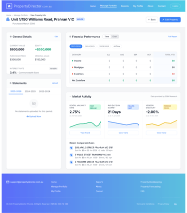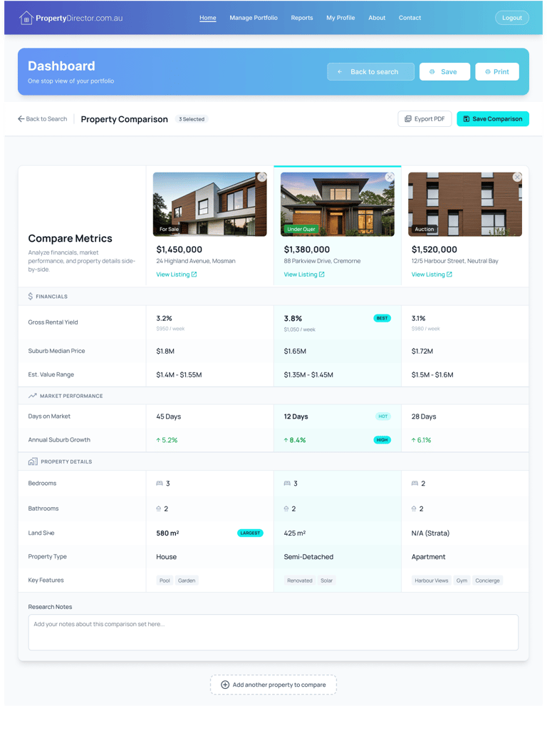 The Portfolio Planner: Already owns 2–5 properties. They use the Portfolio Forecaster to visualise their wealth 10 years out and decide when they can afford to "buy again" or "retire."