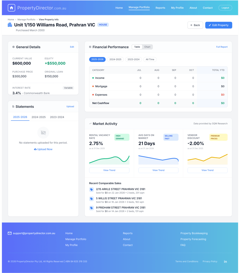 Designed an all-in-one digital ecosystem designed for Australian property investors to consolidate historically fragmented tasks—market research, deal analysis, portfolio forecasting, and digital bookkeeping—into a single, trusted cloud platform.
