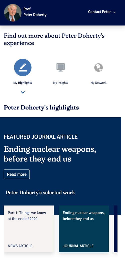 Introduce a homepage section to cycle through 22 research fields using filter "pills".How might a media person connect with an expert?